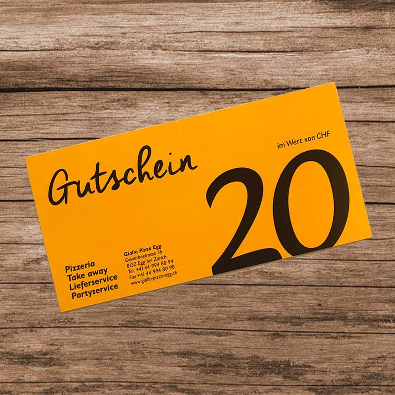 Home / Gutscheine / Gutschein 20.- Continue shopping Weiter einkaufen CHF 20.00 inkl. MwSt Überrasche deine liebsten mit einem tollen Geschenk von Giallo Pizza. Gutschein 20.- quantity Add to cart Category: Gutscheine Product ID: 5503 Related products Gutschein 10.- CHF 10.00 inkl. MwSt Add to cart